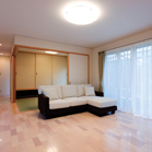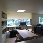 東松原住宅/庭の樹々が美しく映えるライトイエローに彩られた空間