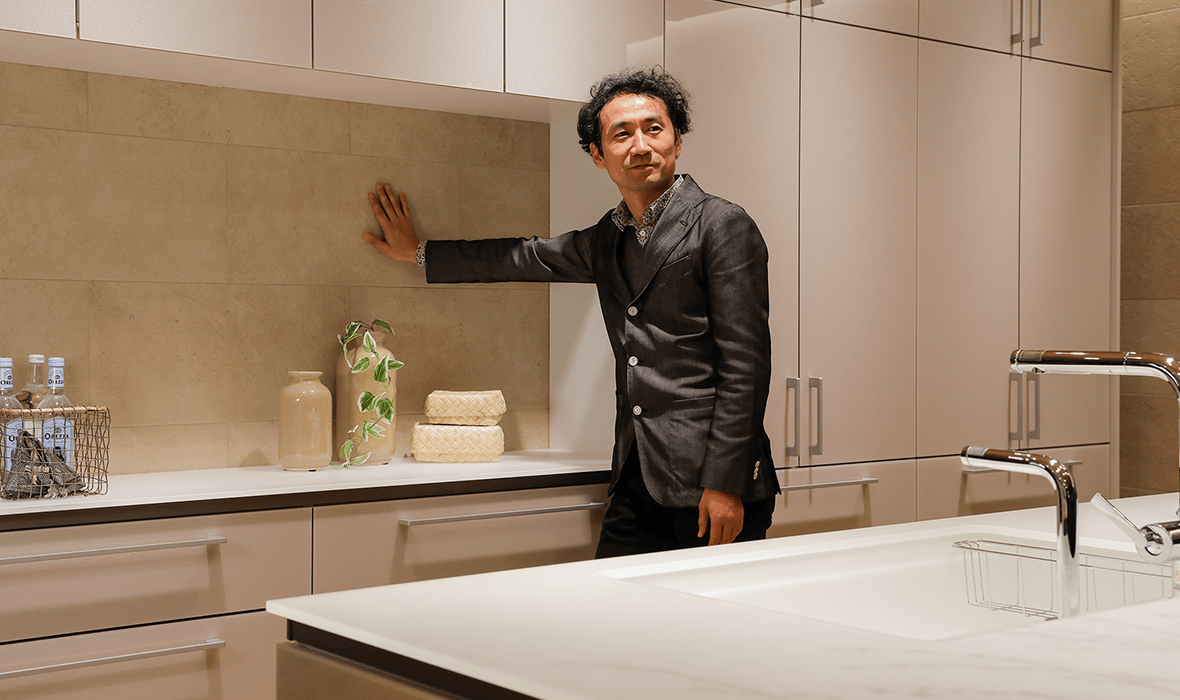 「まずキッチン全体のイメージを考えましょう」と西田さん。リビングやダイニングからも目に入りやすい壁や床は、キッチンの印象を大きく左右します。