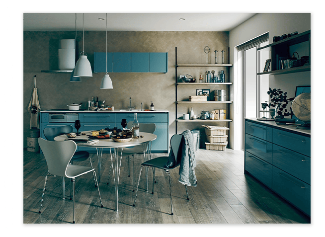 また、キッチンのインテリアに個性を演出したいときにおすすめなのが、照明の工夫です。「空間全体を照らすシーリングライトや作業する手もとを明るくするスポットライトのほかに、アクセントとしてカウンター上に好みのペンダントライトを配するといいですね。雰囲気ががらりと変わります」。