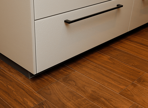 銘木の意匠にこだわった、傷や水、汚れに配慮した高級床材。滑らかな肌触りと艶消し仕上げが魅力です。