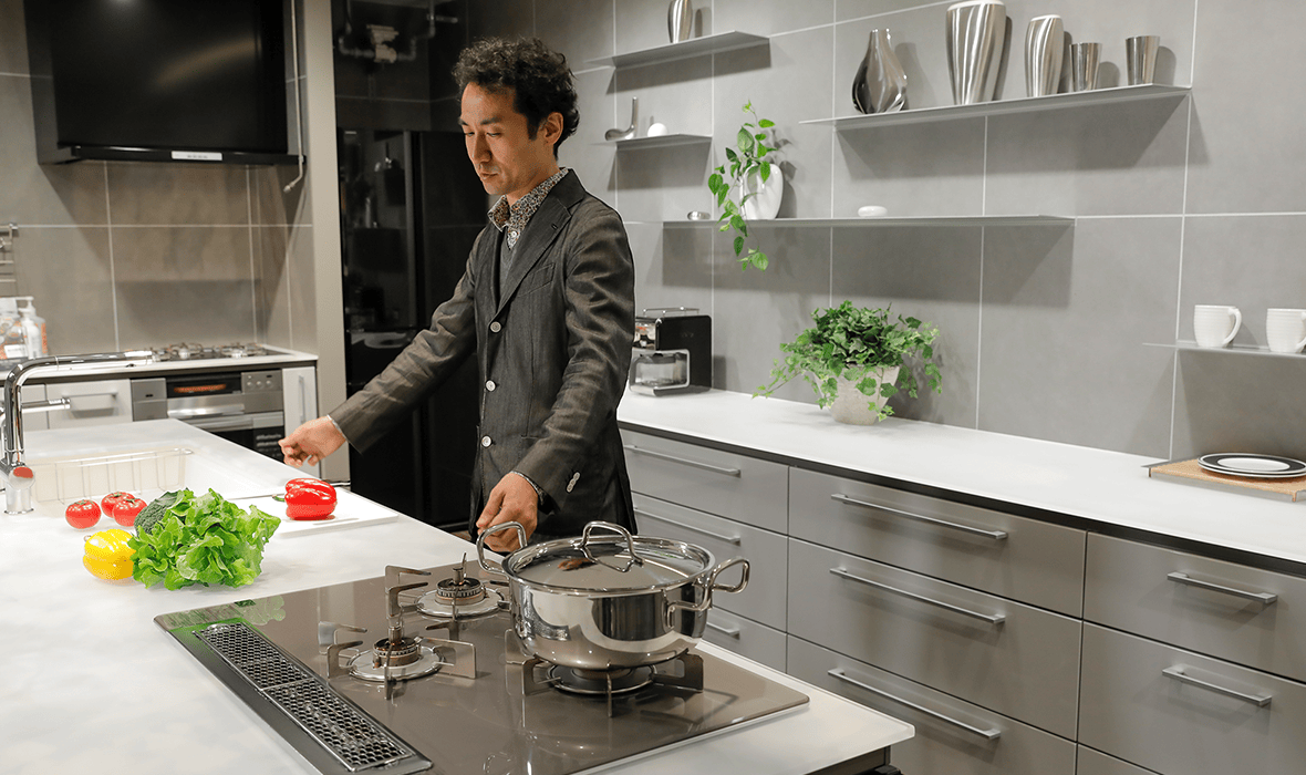 「キッチンでどのように過ごしたいのか」も考えてみましょう。その内容に応じて、シンプルなⅠ型、開放的なアイランド型、家族と向き合う対面型など、適したレイアウトが浮かび上がってきます。「とくに最近人気があるアイランド型は、リビングやダイニングとの一体感が魅力。会話しながらキッチンに立ちたい、みんなで一緒に料理したい、という願いが反映されたスタイルですね。キッチンは、作業の場からコミュニケーションの場へと変わってきているのかもしれません」と西田さん。