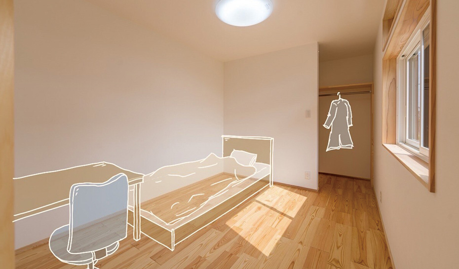 個室をプライベートゾーン、LDKをパブリックゾーンと捉え、親子の距離感を考えた提案に高いプランニング力を感じます。断熱窓などの寒さ対策、さらにシャッター付きの腰窓に変更した西日対策など、快適な暮らしのための配慮が行き届いています。