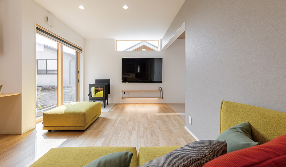 断熱性を高めることで快適性が向上し、大空間の心地よいLDKを実現。玄関からプライベート空間がすべて見えないように、配置も工夫されています。LDKの一角に設けた畳敷きのコーナーは、フリースペースとして便利に活用できそうです。