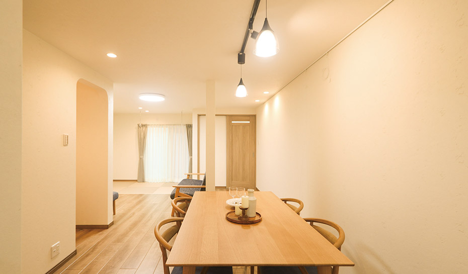 倉庫として使用していて老朽化しており、本当に住めるのか不安でした。人通りの多い道路に面しているため、防犯やプライバシーの心配もありました。暗い家という印象だったので、当初は2階をリビングにと考えていましたが、1階で暮らすというご提案をいただき、我に返るような気持ちに。年齢を重ねても快適に暮らせる未来を具体的にイメージできました。明るすぎず暗すぎず、心地よい光に包まれ、安心して暮らせるリフォームに大変満足しています。