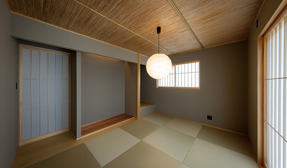 設計士だったお母様が設計した10LDKの大きな家を、4人家族の生活に合わせて減築。吹き抜けのある広い玄関ホールはリビングに変更し、玄関は駐車場に近い位置に移動。玄関から洗面、ランドリールームへつながる動線を計画しました。和室2間と広縁を一体化してダイニングキッチンに。大きな窓から庭を眺められる心地の良い空間に仕上げました。