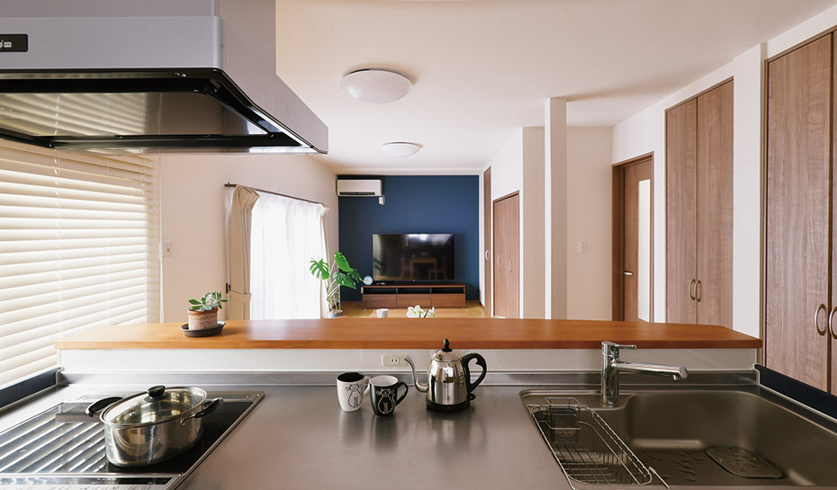 とにかく動線が良くなり、快適です。以前はキッチンとリビングが分かれていて疎外感がありましたが、家族と話しながら家事ができてうれしいです。リビングも収納が多く、すっきり片付けられるようになりました。ごろごろしながらゆっくり過ごせています。娘夫婦も喜んでおり、孫たちも泊まりに来るようになりました。耐震補強も行ったので災害への不安が減り、断熱施工も効果抜群で室内の温度が驚くほど変わりました。快適で安全な家にとても満足しています。