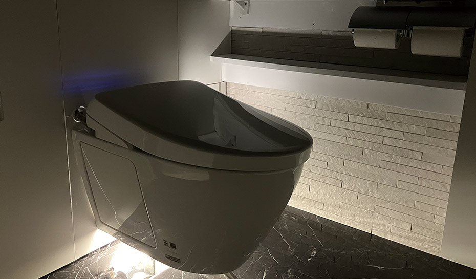 トイレ全体をリモデルすることになるとは考えていませんでしたが、結果的には広さを変えることなく素敵なトイレが完成し、とてもうれしいです。気に入った手洗器を取り付ける方法を考えてくださったことにも感謝しています。壁の一面に張った壁材は、主人のお気に入りポイントです。フローティングタイプの便器は、デザインが良いだけではなく、しっかり掃除できるところが気に入っています。便器も便座も掃除がしやすく、清潔な状態を保つことができるので、安心感があります。